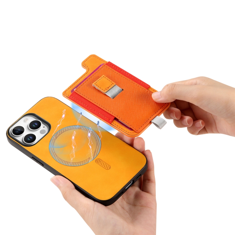 Funda para iPhone 16 Tapa Trasera Extraíble Cuero Ranuras para Tarjetas Cierre Magsafe (Amarillo)