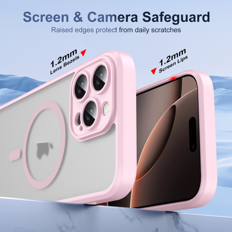 Funda para iPhone 16 Pro con Tapa Translúcida y Botón de Inteligencia Artificial (Rosa)