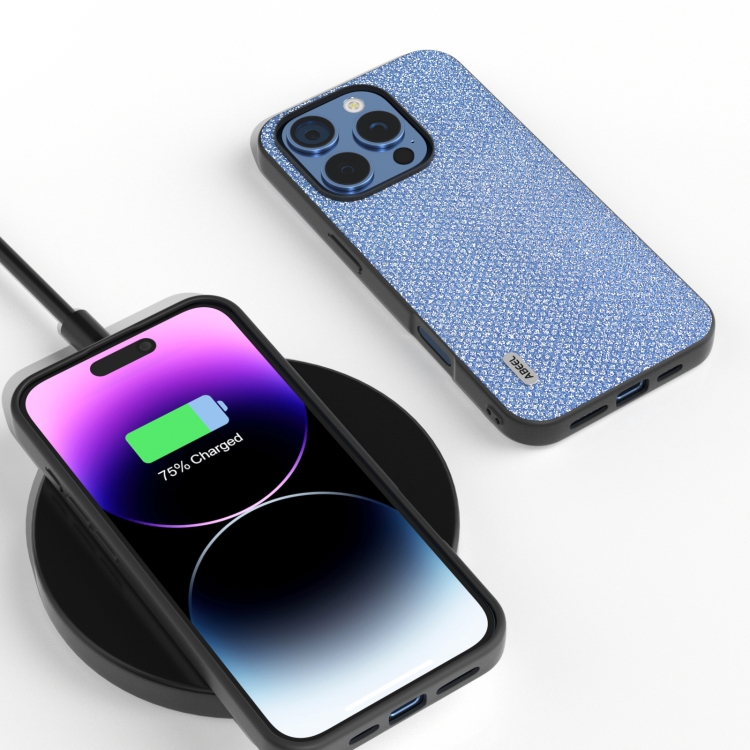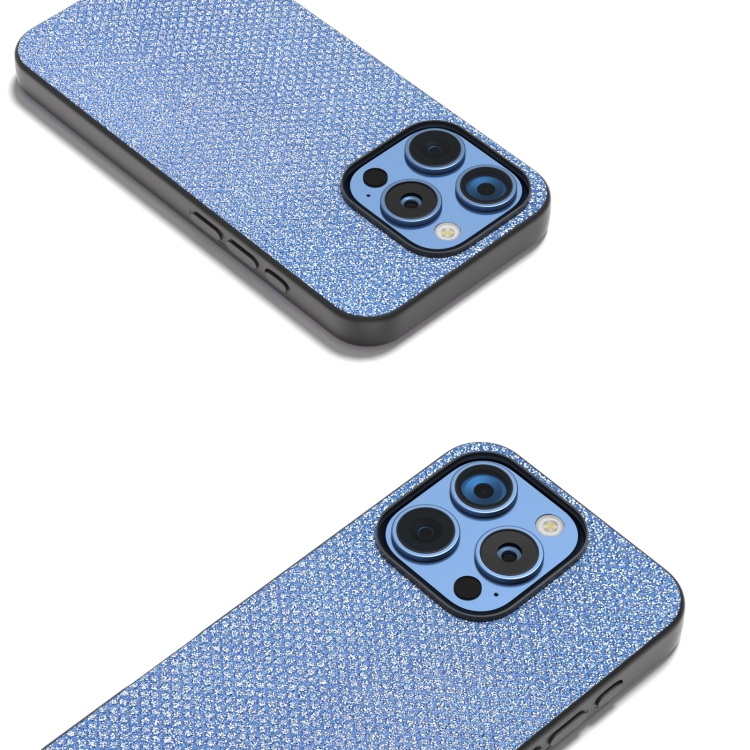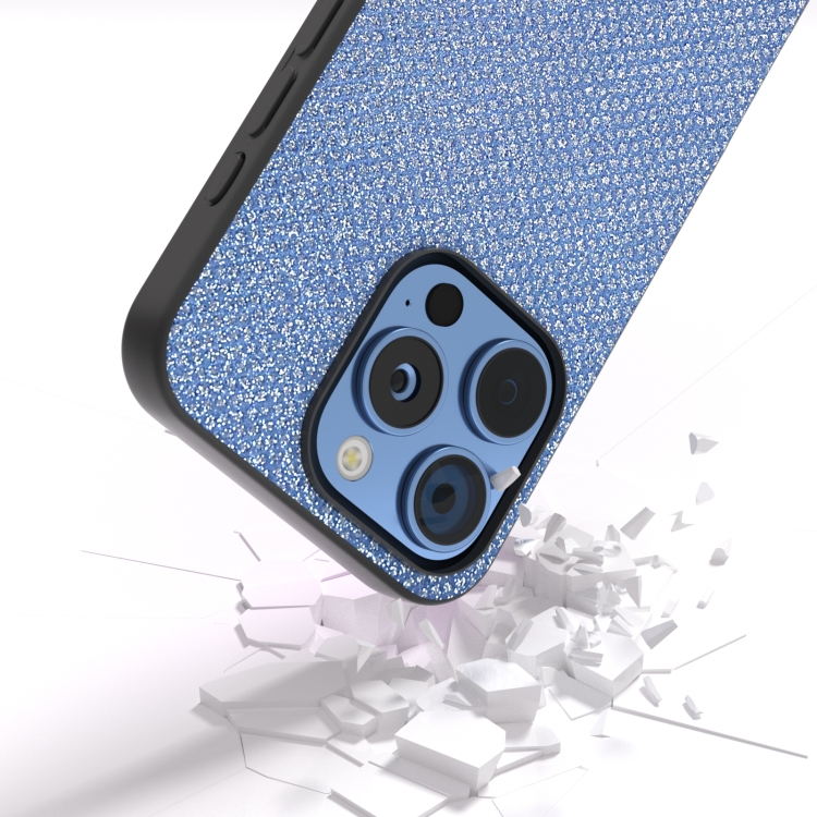 Funda para iPhone 16 Pro Max con Marco Negro y Diamantes (Azul Zafiro)
