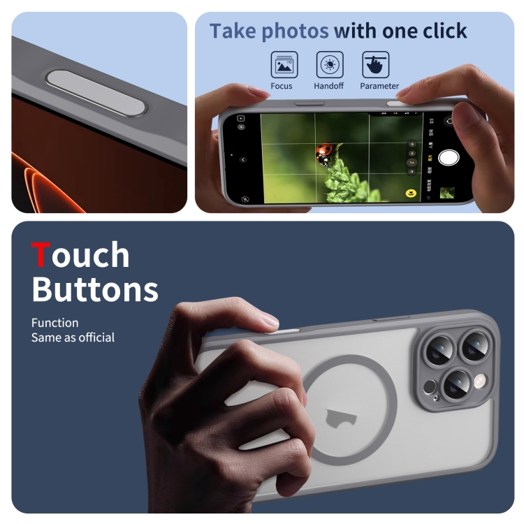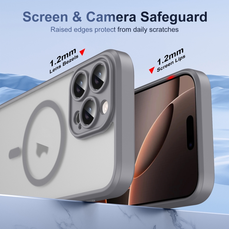 Funda para iPhone 16 Pro Translúcida con Tapa Esmerilada y Botón IA (Gris)