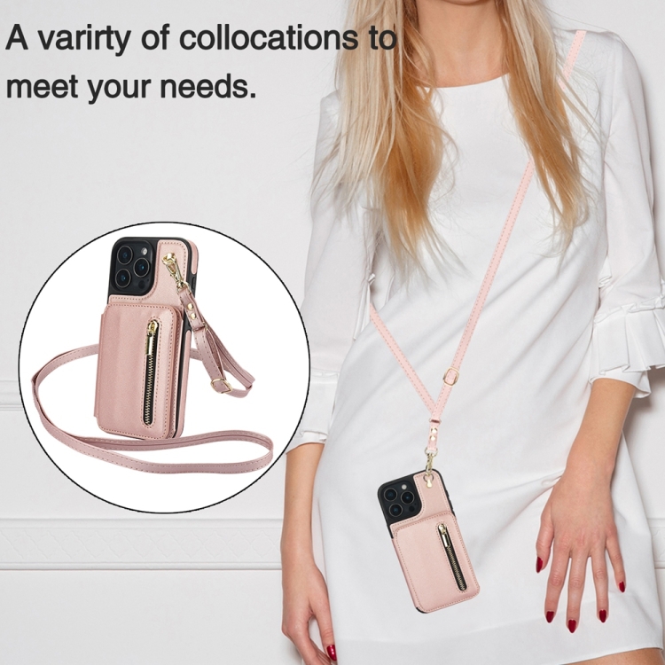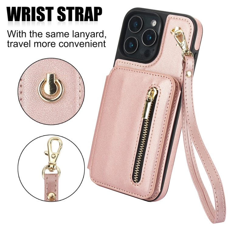 Funda para iPhone 16 Pro Ym006 con Cremallera y Doble Cordón (Oro Rosa)