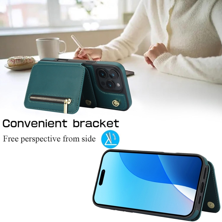 Funda para iPhone 16 Pro Ym006 con Cremallera y Doble Cordón (Verde)