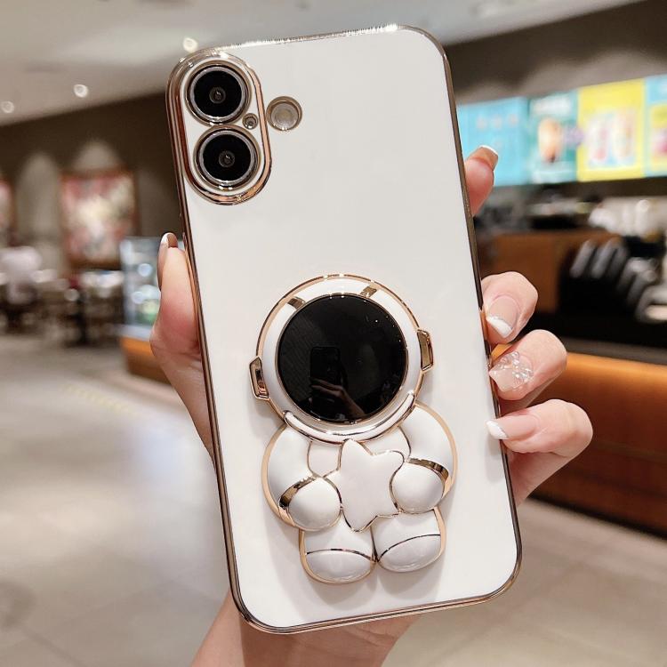Funda para iPhone 17 con soporte de astronauta y galvanoplastia "Embrace Stars" (blanca)