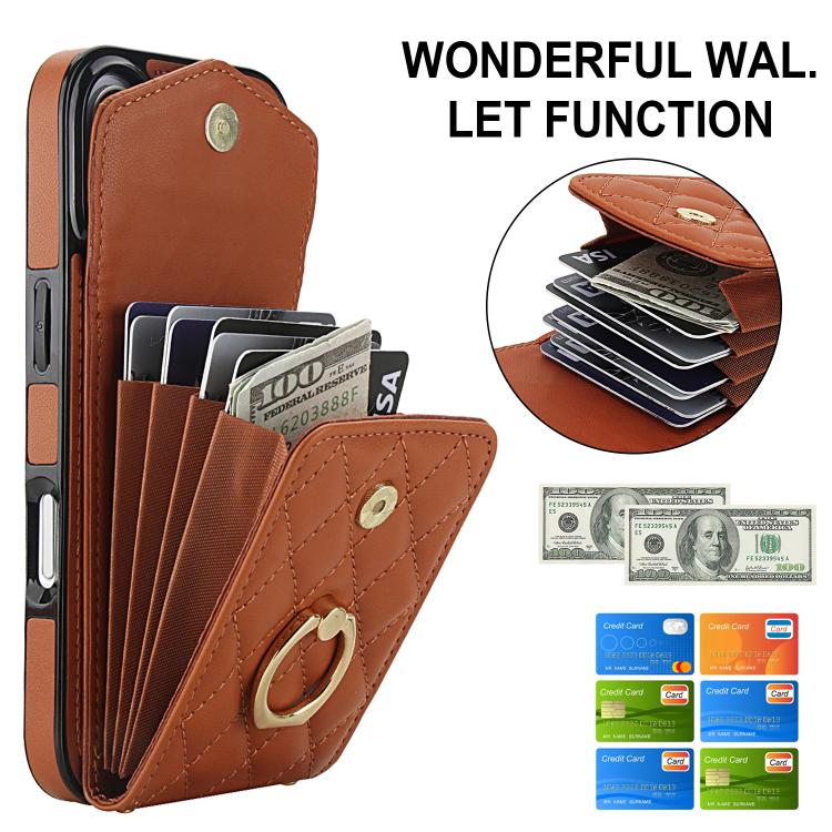 Funda para iPhone 17 con textura rómbica y cordón largo (marrón)