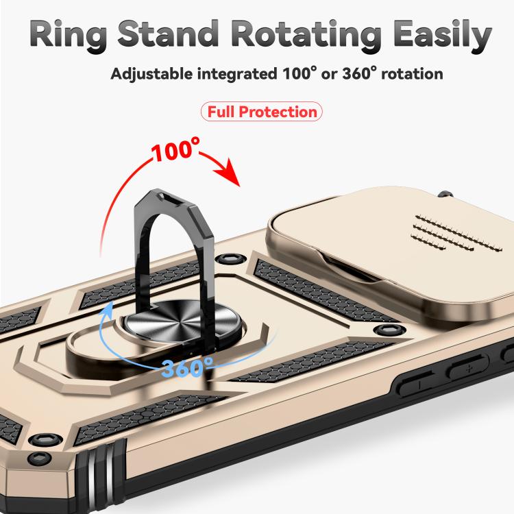 Funda para iPhone 17 Pro Max con soporte deslizante tipo cámara (dorada)