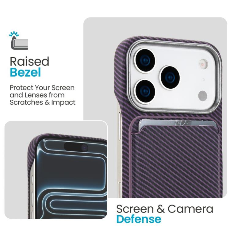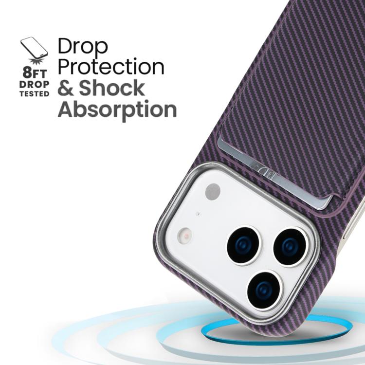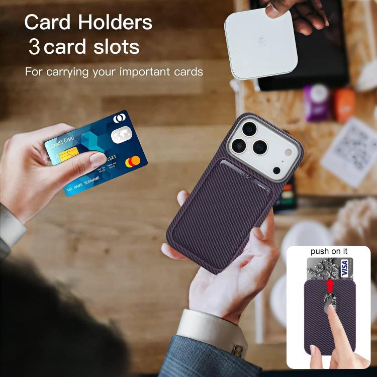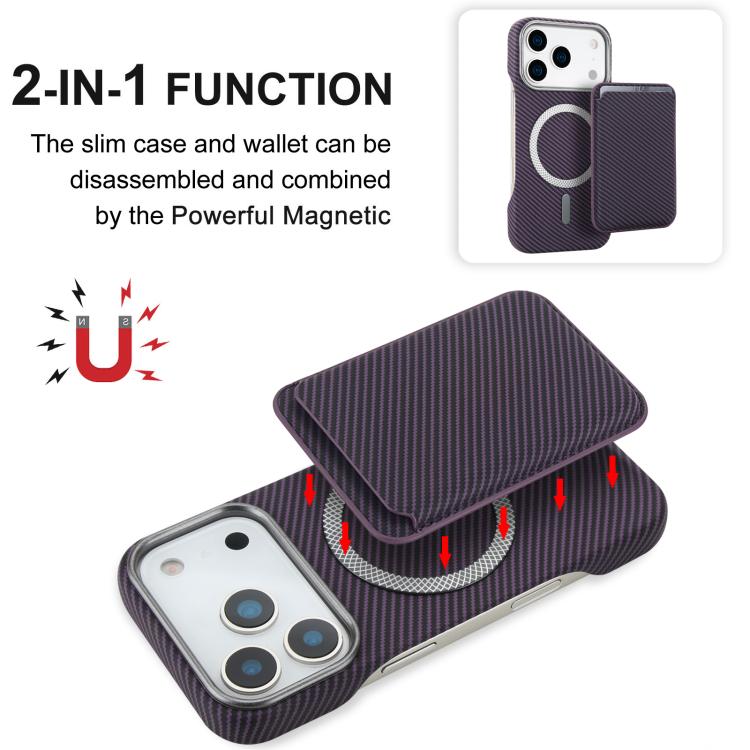 Funda para iPhone 17 Pro Max con tarjetero magnético MagSafe de fibra de carbono (morada)