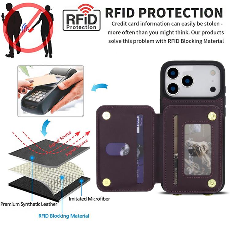 Funda para iPhone 17 Pro YM006 con cremallera y doble cordón (morado oscuro)