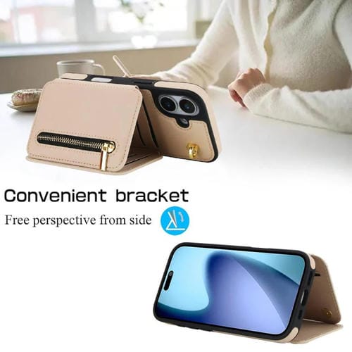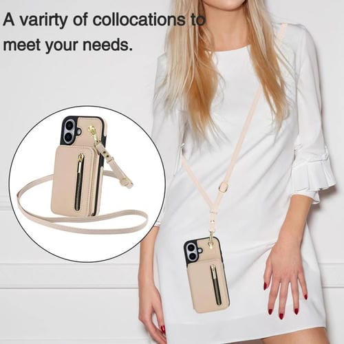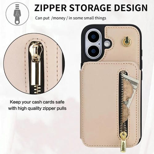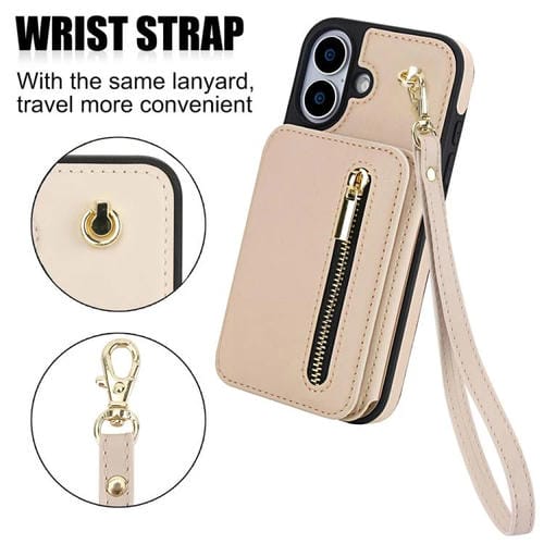 Funda para iPhone 17 YM006 con cremallera y doble cordón (albaricoque)