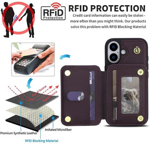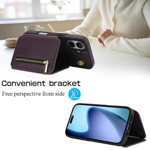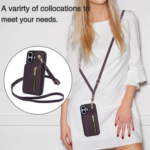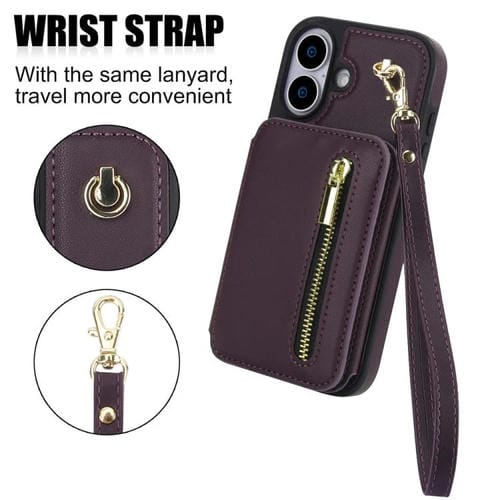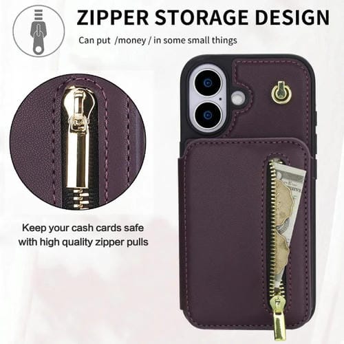 Funda para iPhone 17 YM006 con cremallera y doble cordón (morado oscuro)