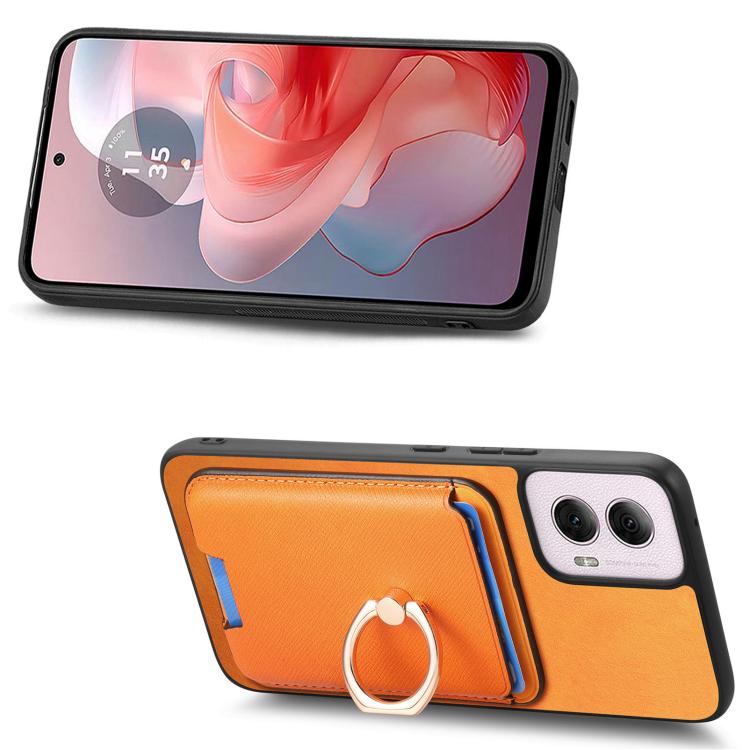 Funda para Motorola Moto G 5G (2024) con Ranuras para Tarjetas y Anillo de Cuero (Amarillo)