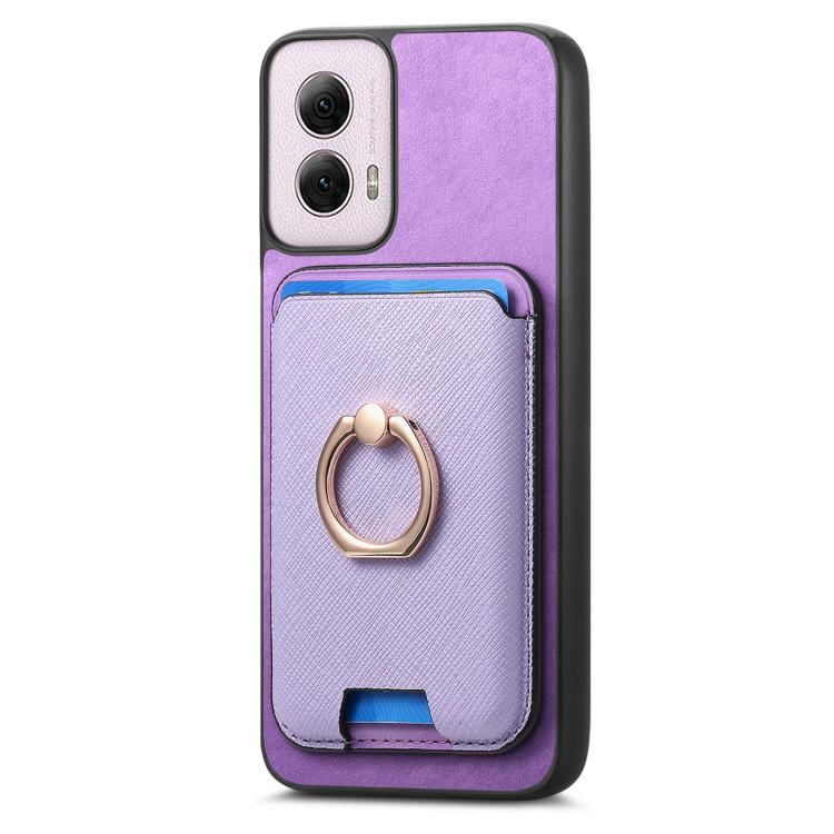 Funda para Motorola Moto G Power 5G (2024) con Ranuras para Tarjetas y Anillo de Cuero (Morado)