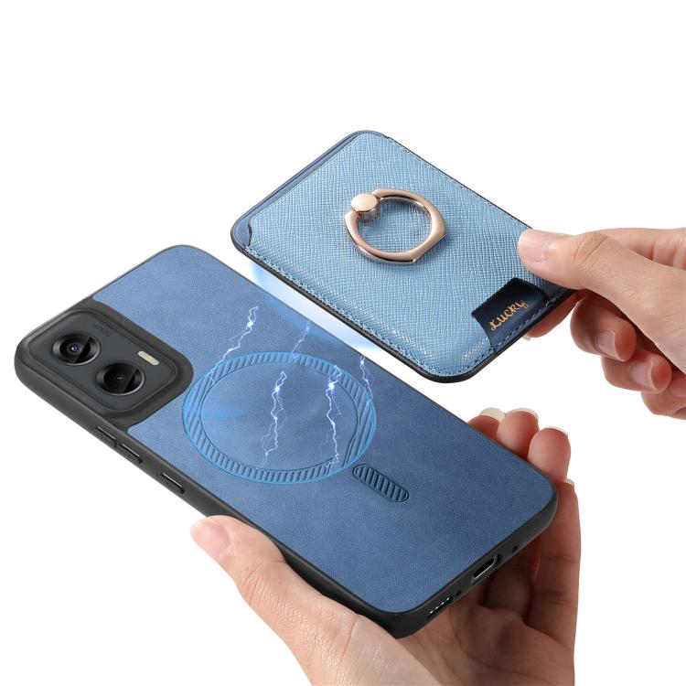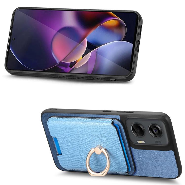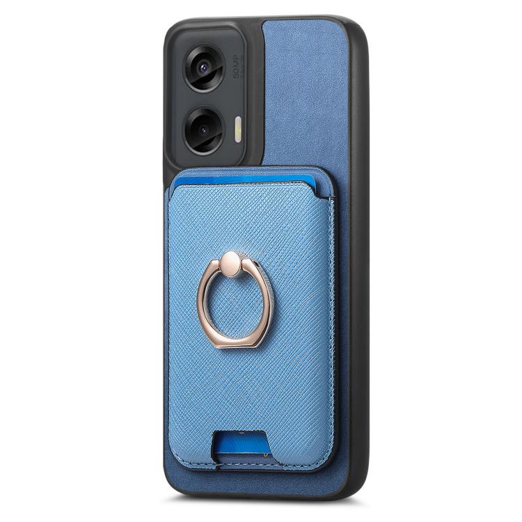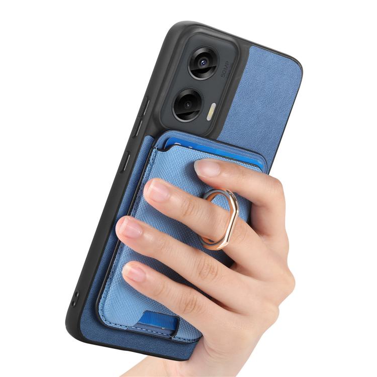 Funda para Motorola Moto G Stylus 5G (2024) con Ranuras para Tarjetas y Anillo de Cuero (Azul)