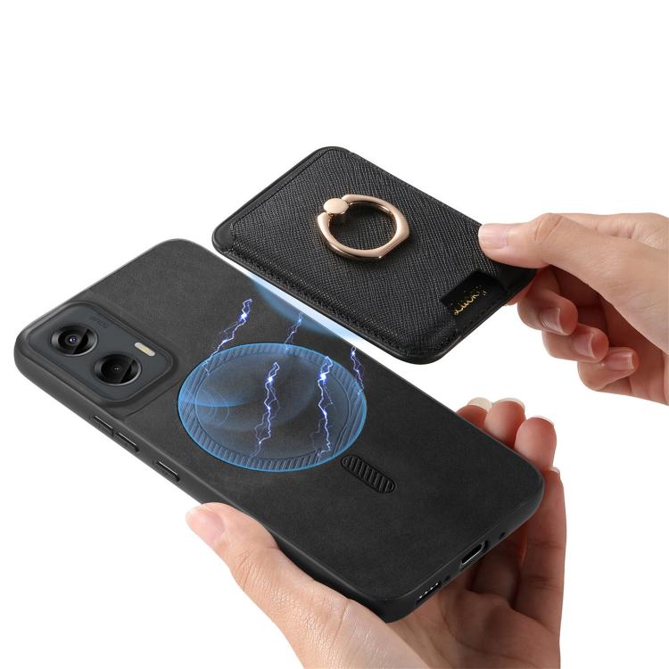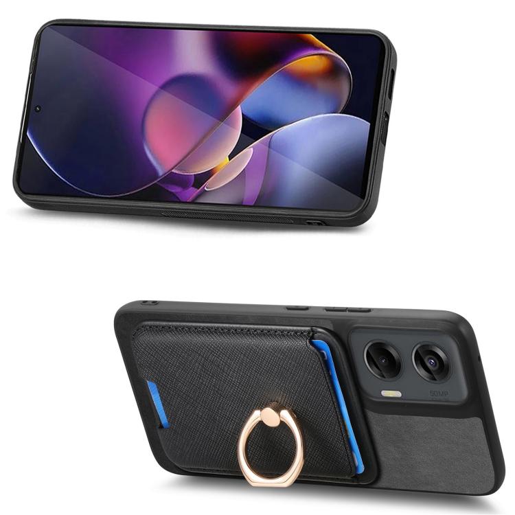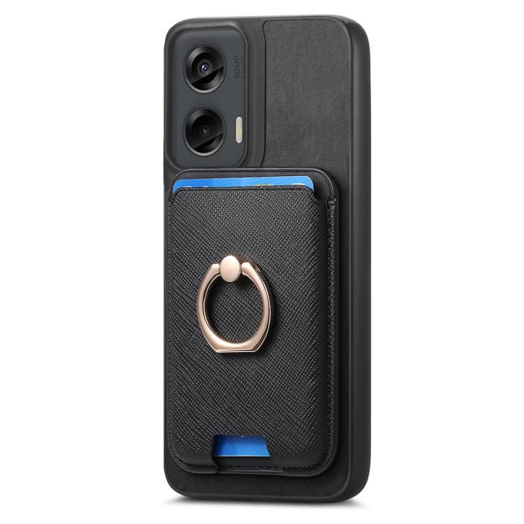 Funda para Motorola Moto G Stylus 5G (2024) con Ranuras para Tarjetas y Anillo de Cuero (Negro)