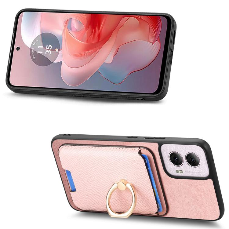 Funda para Motorola Moto G55 con Ranuras para Tarjetas y Anillo de Cuero (Rosa)