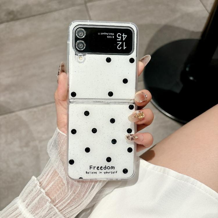 Funda para Samsung Galaxy Z Flip4 con diseño de puntos brillantes (blanca)