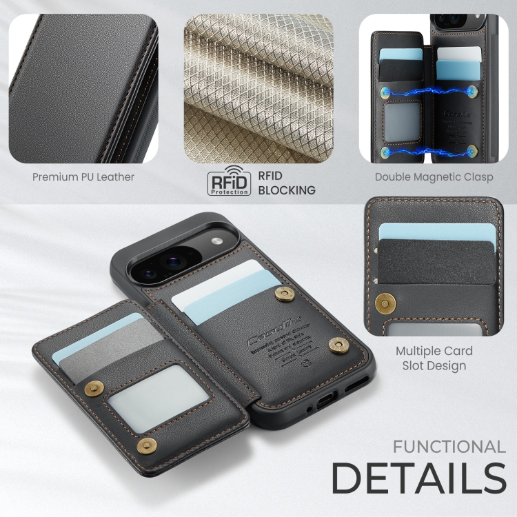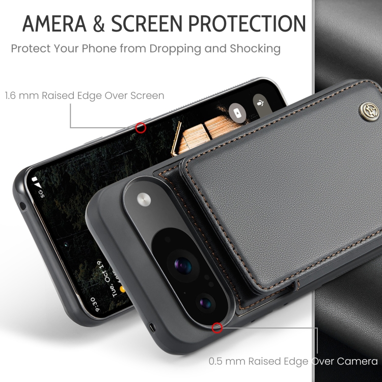 Funda Antirrobo Caseme C22 para Google Pixel 9/9 Pro con Ranuras para Tarjetas y RFID (Negra)