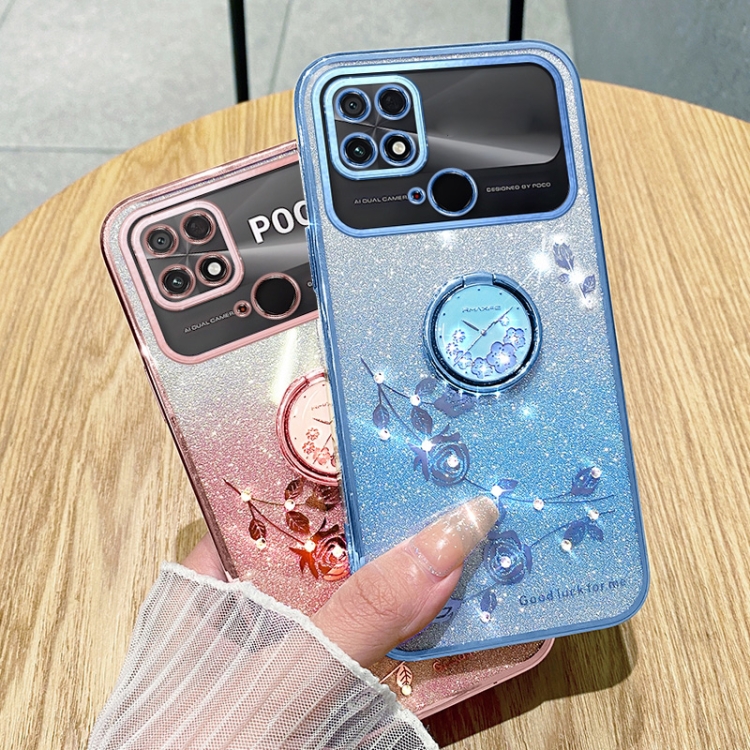 Funda para Teléfono con Anillo de Flores Inmortal con Purpurina Degradada para Xiaomi Poco C40 4G, Todo Incluido (Rosa)