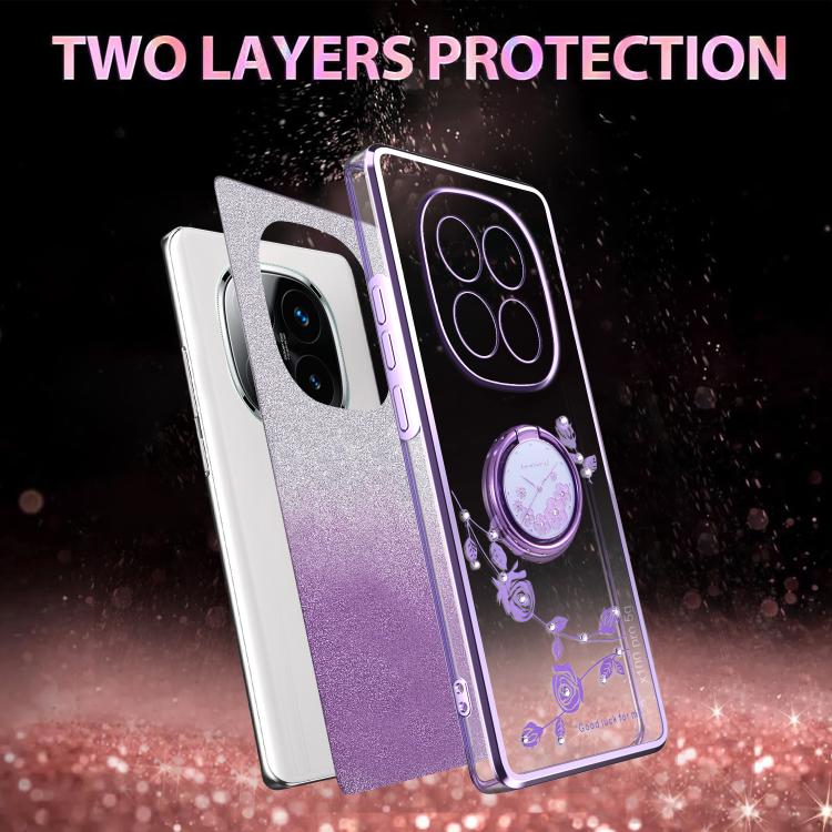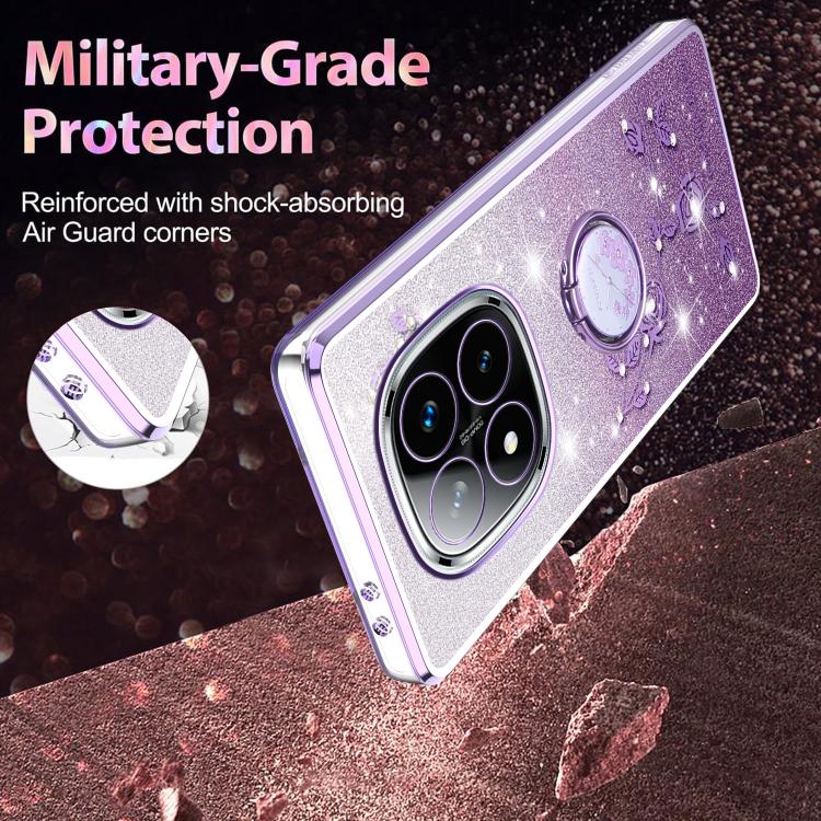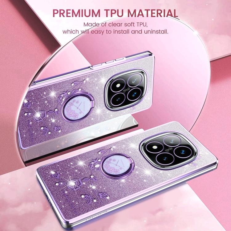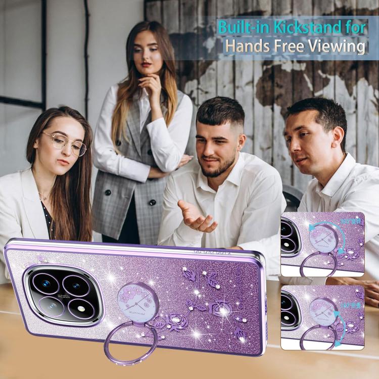 Funda para Teléfono con Anillo de Flores Inmortales con Purpurina Degradada para Xiaomi Redmi Note 14 Pro+ 5G, Todo Incluido (Morado)