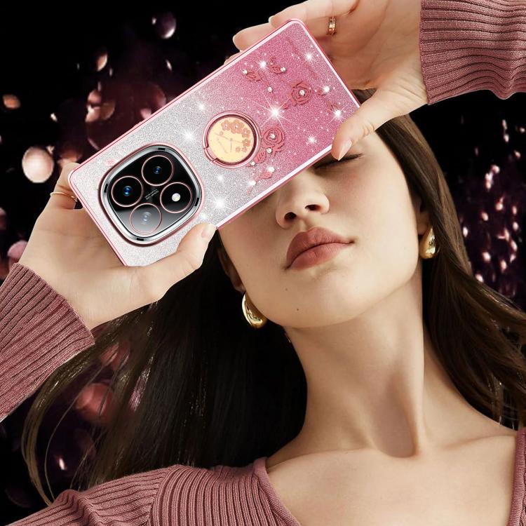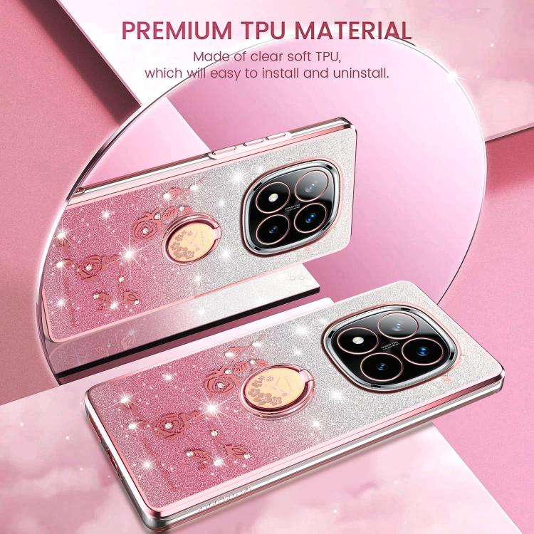 Funda para Teléfono con Anillo de Flores Inmortales con Purpurina Degradada para Xiaomi Redmi Note 14 Pro+ 5G, Todo Incluido (Rosa)