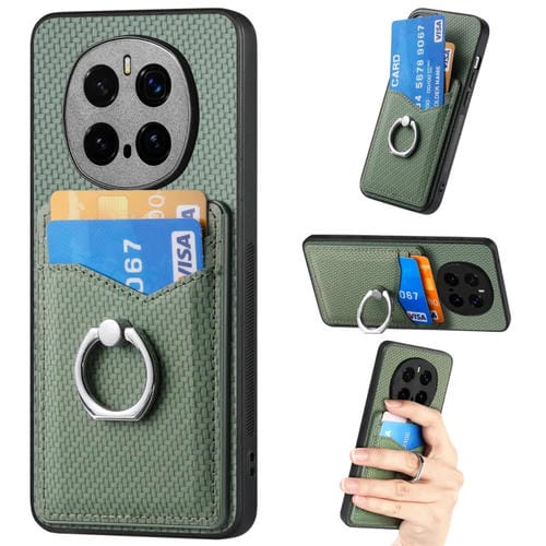 Funda para Teléfono Honor Magic7 Pro con Anillo y Billetera Fibra de Carbono (Verde)