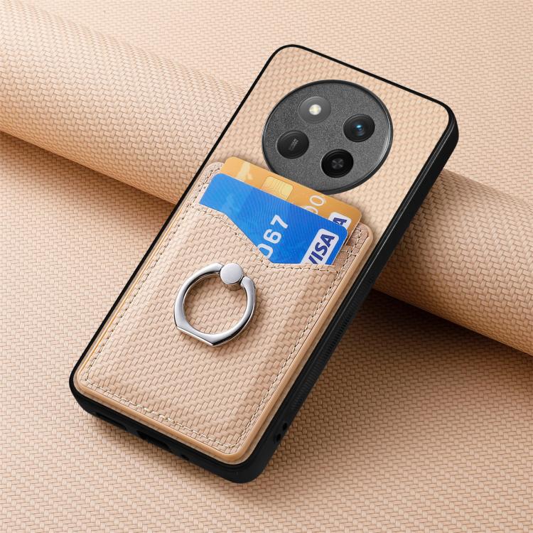 Funda para Teléfono Honor X60 Pro con Anillo y Billetera Fibra de Carbono (Caqui)