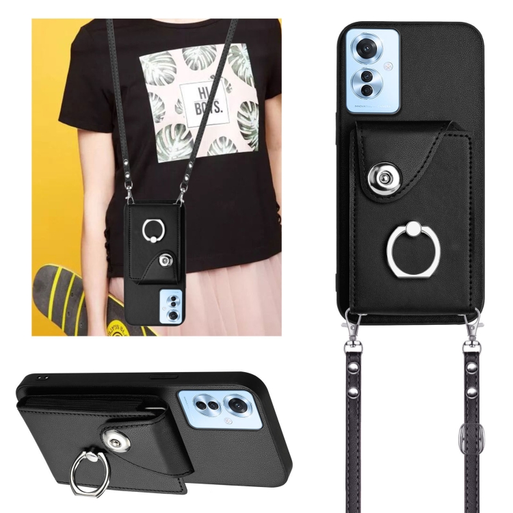 Funda para Teléfono con Anillo y TaRJetero para Oppo F25 Pro 5G, con Cordón Largo (Negro)