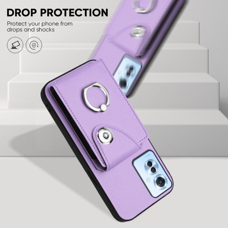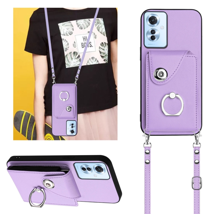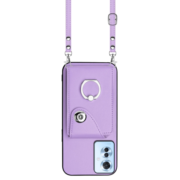 Funda para Teléfono con Aro y TaRJetero para Oppo F25 Pro 5G, Diseño Indio, con Cordón Largo (Morado)