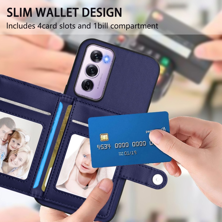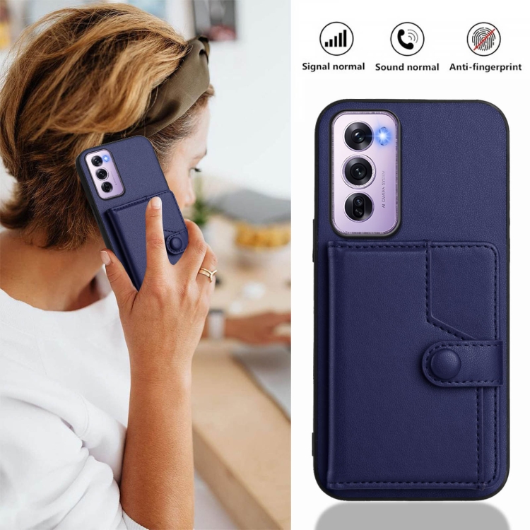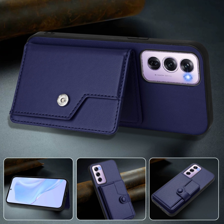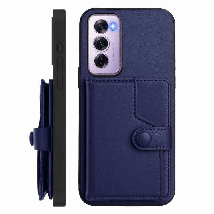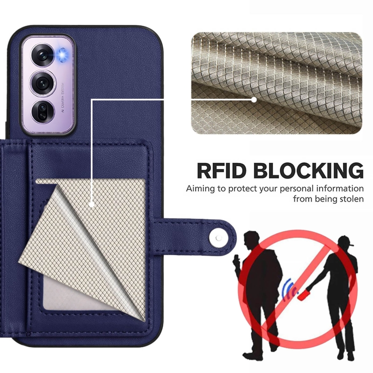 Funda para Teléfono con Botón y TaRJetero Antirrobo Rfid para Oppo Reno12 Pro Global (Azul)