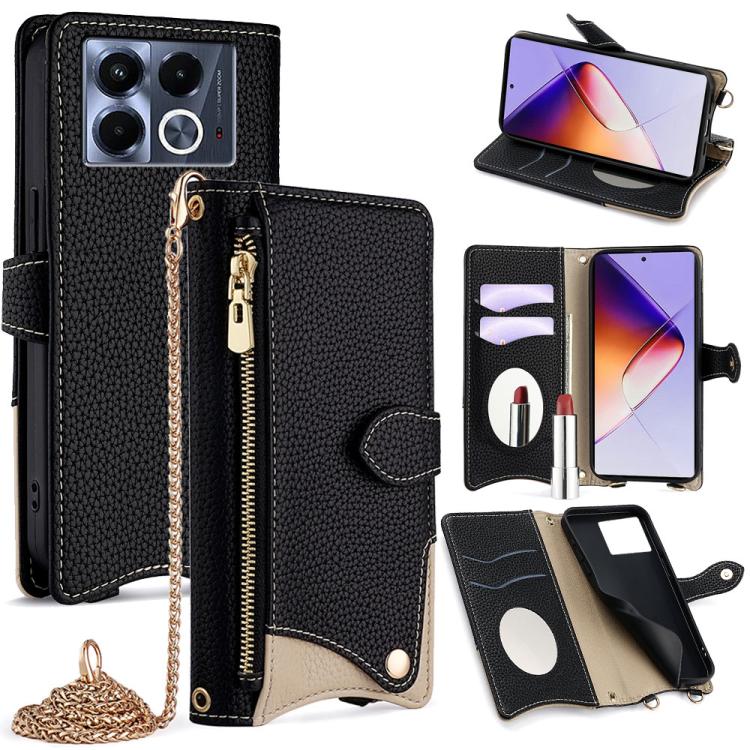 Funda para Teléfono Infinix Note 40 5G con Cadena Cruzada Piel de Lichi Forma Cola de Pez (Negra)