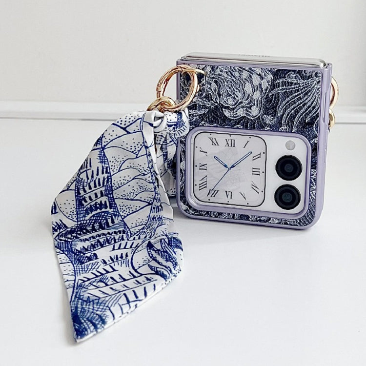 Funda para Teléfono Huawei Nova Flip con Cobertura Total y Estilo Bordado con Bufanda o Pulsera (Azul)