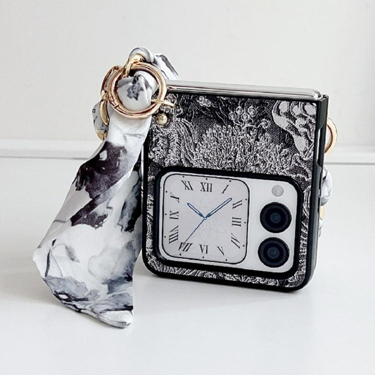Funda para Teléfono Huawei Nova Flip con Cobertura Total y Estilo Bordado (Negra) con Bufanda o Pulsera