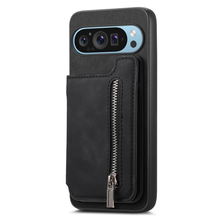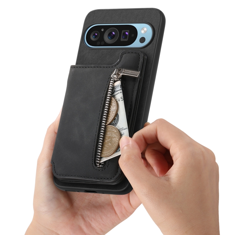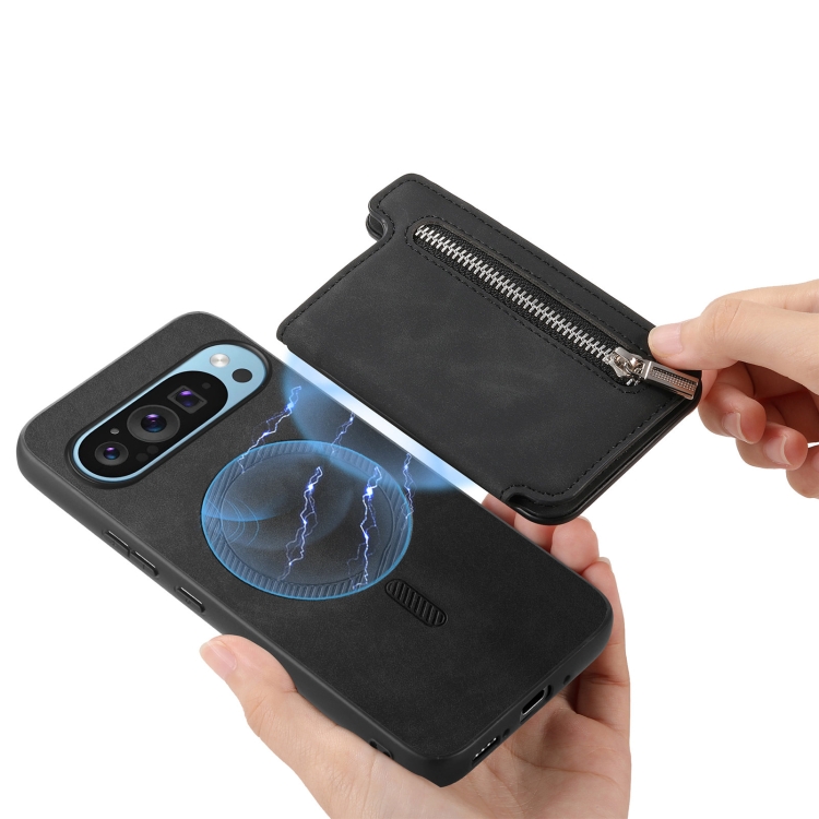Funda para Teléfono con Cremallera Magsafe Retro para Google Pixel 8 Pro (Negra)