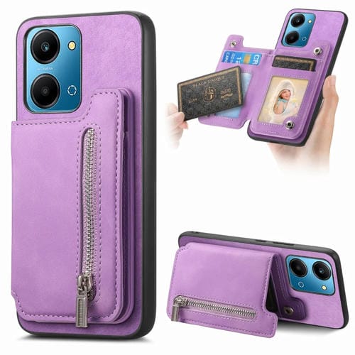 Funda para Teléfono Honor Play 7T/X7A con Cremallera Magsafe Retro (Morado)