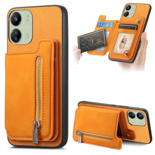 Funda para Teléfono con Cremallera Magsafe Retro para Redmi 13C / Poco C65 / M6 (Amarilla)