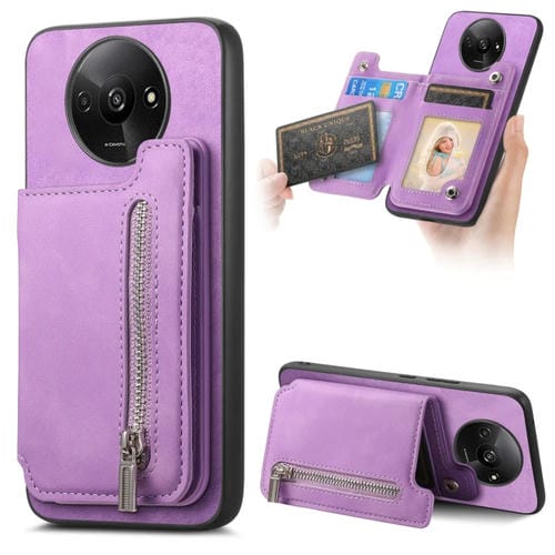 Funda para Teléfono con Cremallera Magsafe Retro para Redmi A3, TaRJetero, Cartera (Morado)