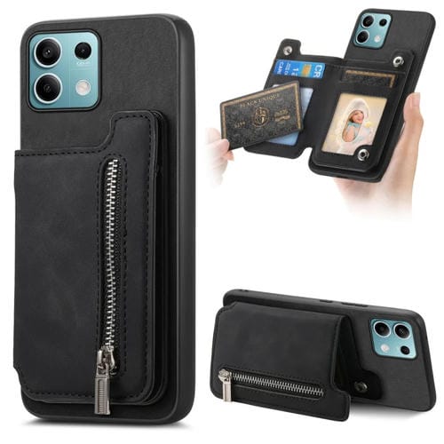 Funda para Teléfono con Cremallera Magsafe Retro para Redmi Note 13 5G (Negra)