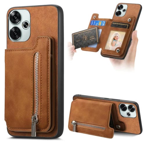 Funda para Teléfono con Cremallera Magsafe Retro para Redmi Turbo 3 5G (Marrón)