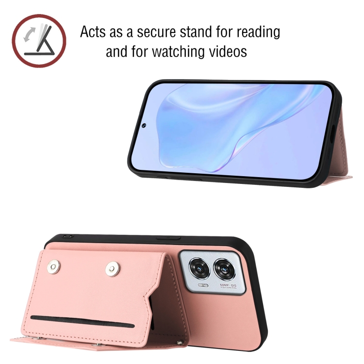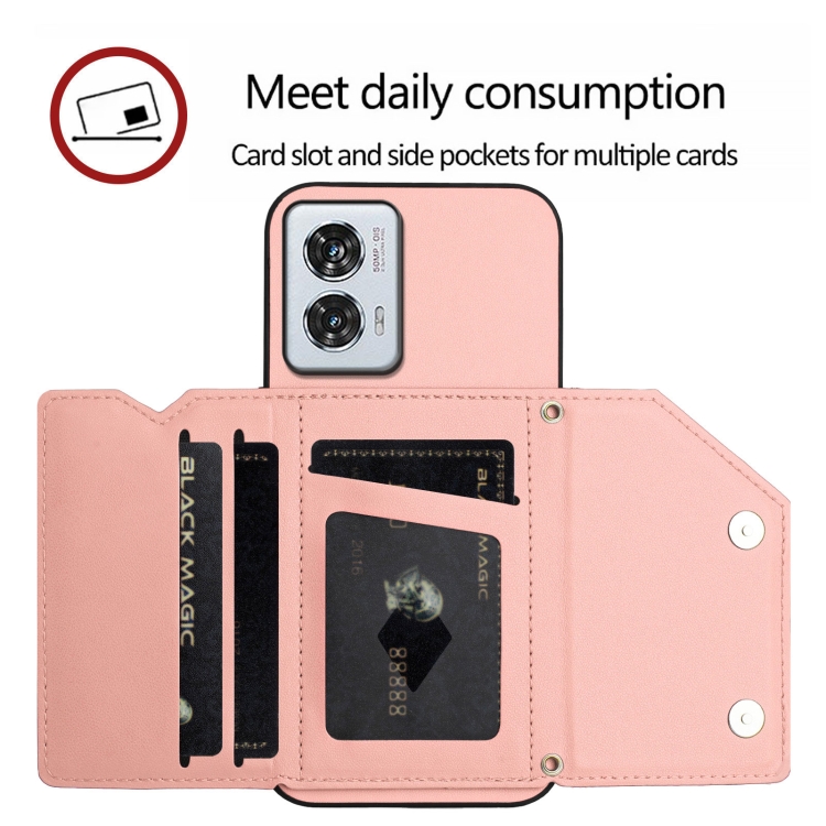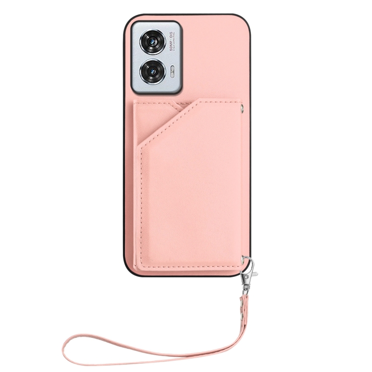 Funda para Teléfono Motorola Edge 50 Fusion con 4 Ranuras para Tarjetas y Correa (Rosa)