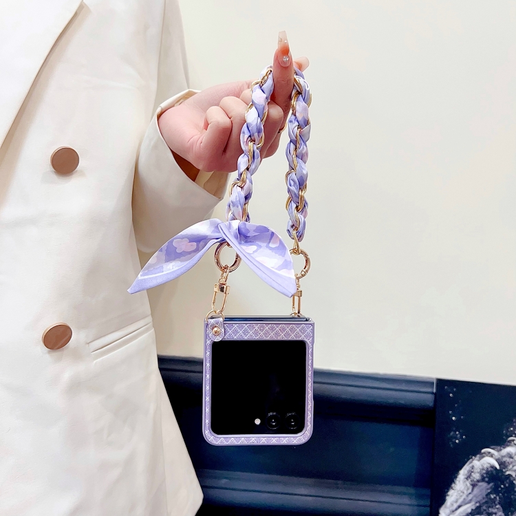 Funda para Teléfono Motorola Razr 50 Ultra con Diseño de Rombos y Diamantes Brillantes y Pulsera de Seda (Morado)