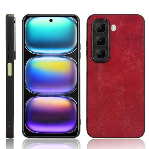 Funda para Teléfono Infinix Hot 50 5G Estampado de Vaca Costura Trasera (Roja)