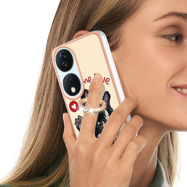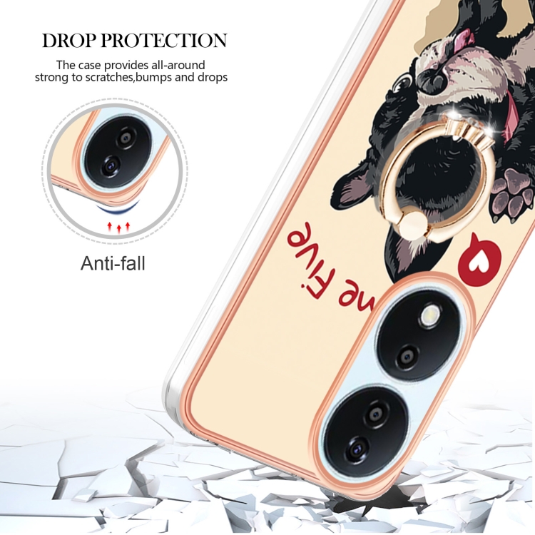 Funda para Honor X7B 4G/5G con Galvanoplastia IMD Doble Cara y Soporte para Anillo (Perro de la Suerte)