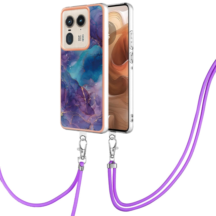 Funda para Motorola Edge 50 Ultra con Imd Doble Cara y Galvanoplastia Mármol con Cordón (Púrpura)