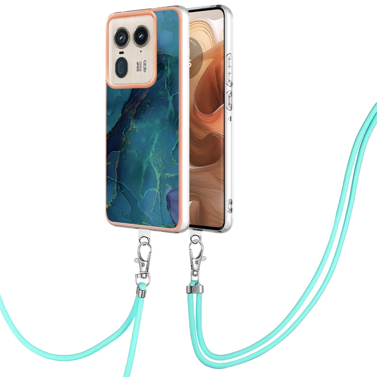 Funda para Teléfono Motorola Edge 50 Ultra con IMD Doble Cara y Galvanoplastia de Mármol con Cordón (Verde)