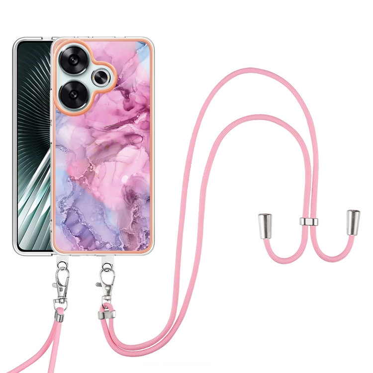 Funda para Teléfono con Imd de Doble Cara con Galvanoplastia de Mármol para Xiaomi Poco F6 5G con Cordón (Rosa 013)