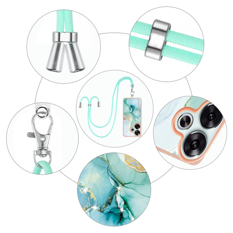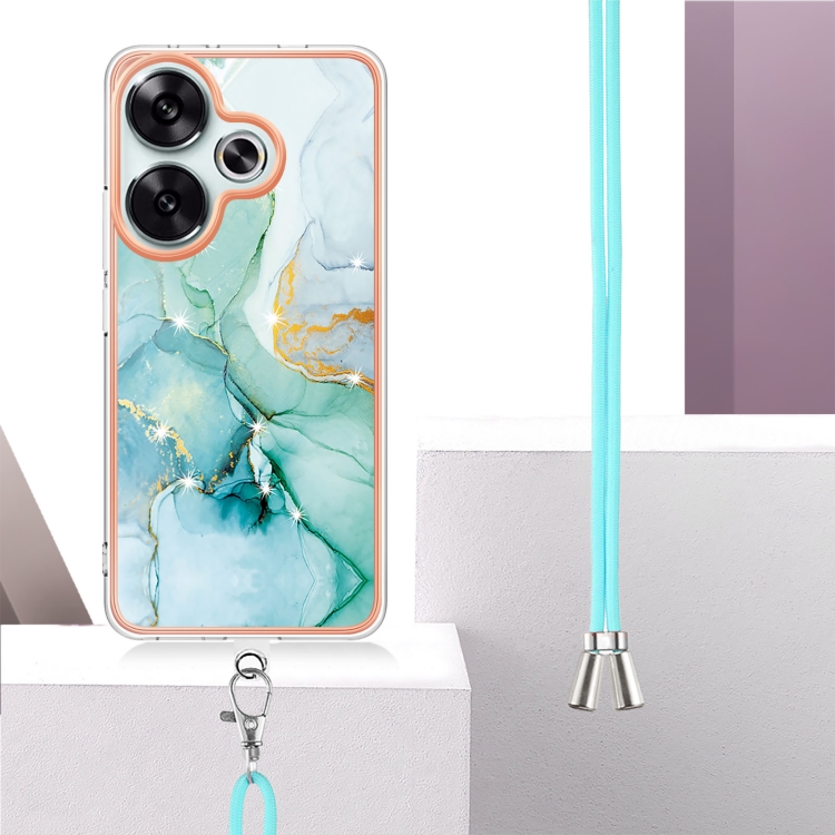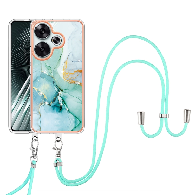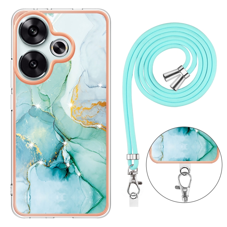 Funda para Teléfono con Imd de Doble Cara con Galvanoplastia de Mármol para Xiaomi Poco F6 5G con Cordón (Verde 003)