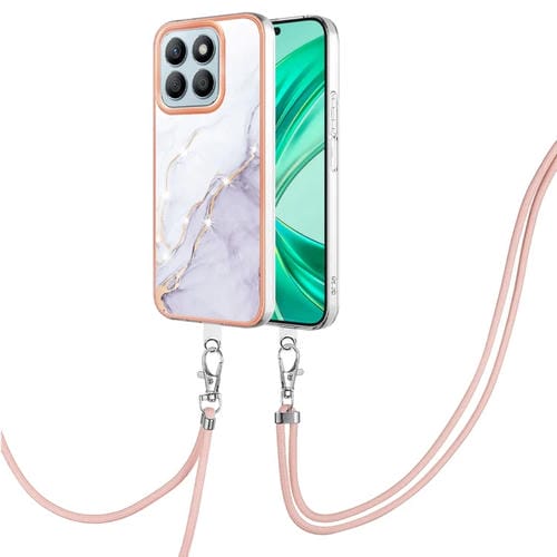 Funda para Teléfono Honor X8B con Imd Doble Cara y Revestimiento Mármol Galvanizado con Cordón (Blanco)