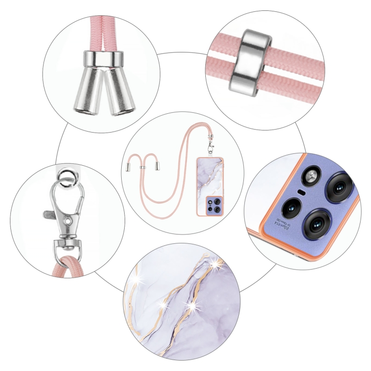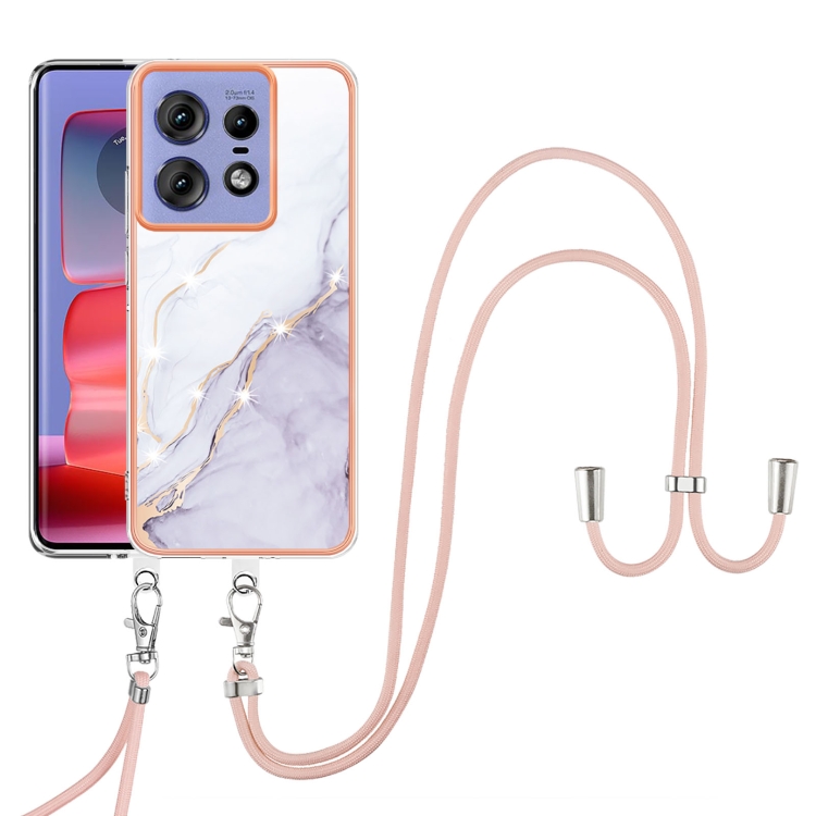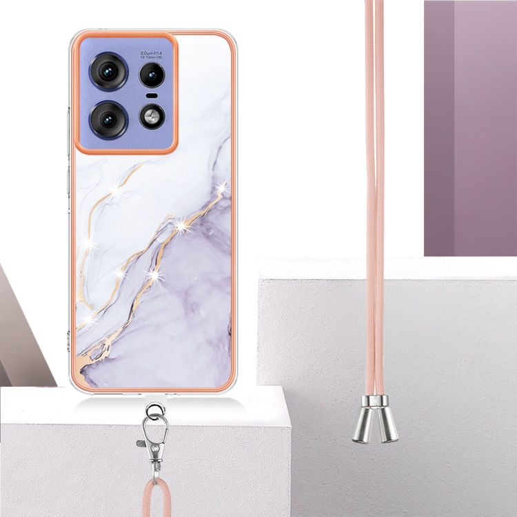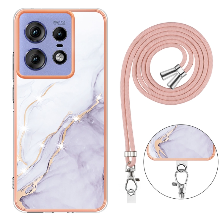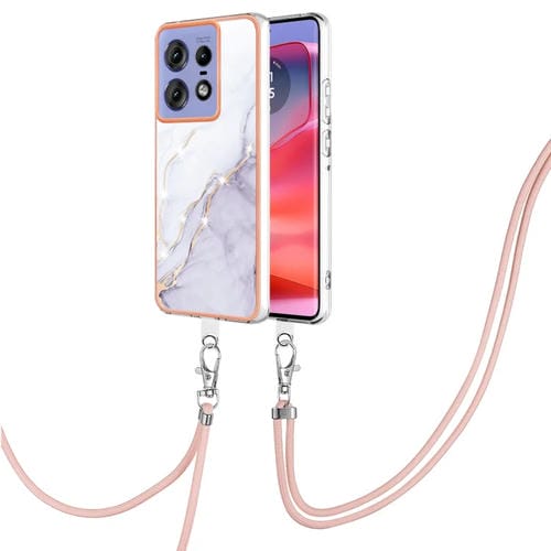 Funda para Motorola Edge 50 Pro con IMD Doble Cara y Revestimiento Mármol Galvanizado con Cordón (Blanco)