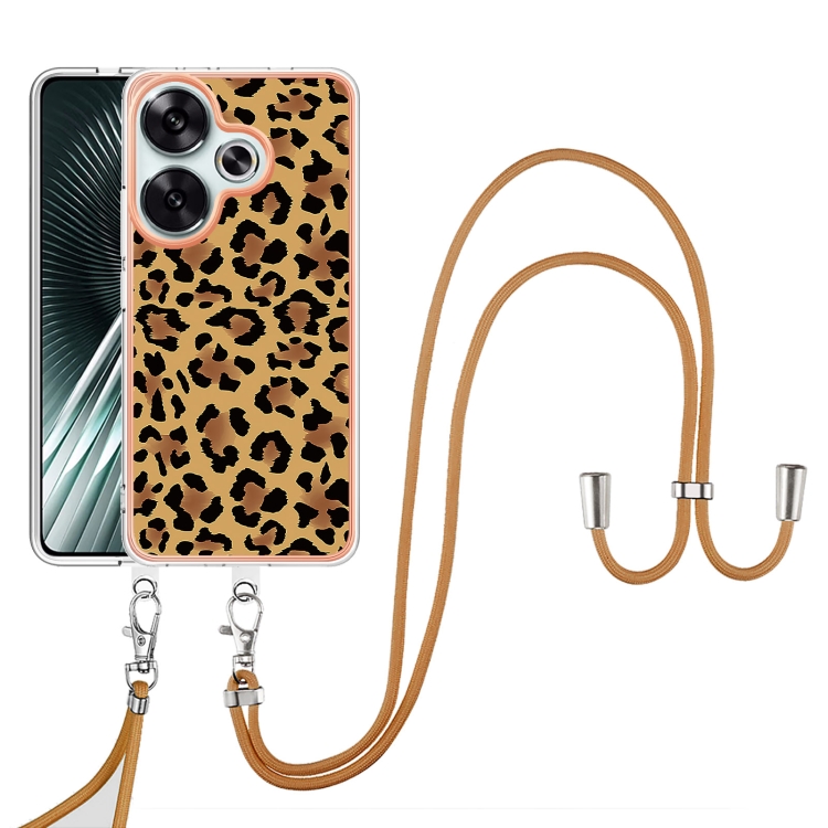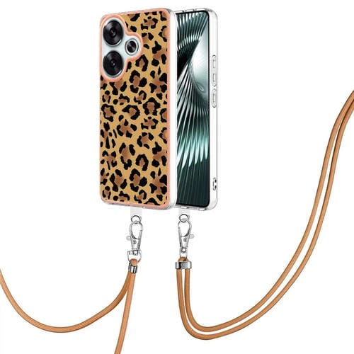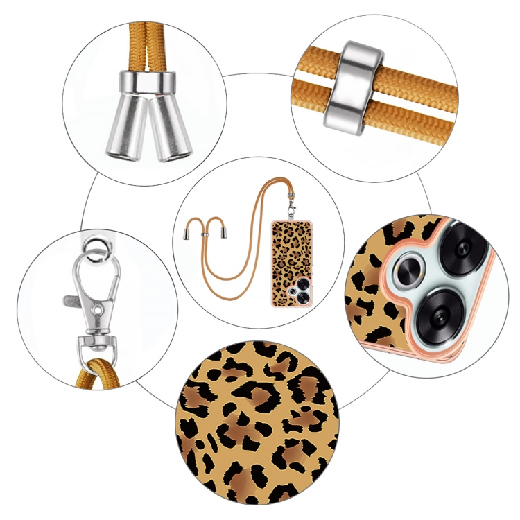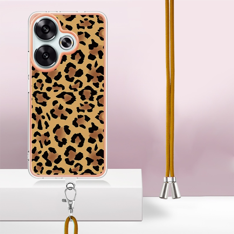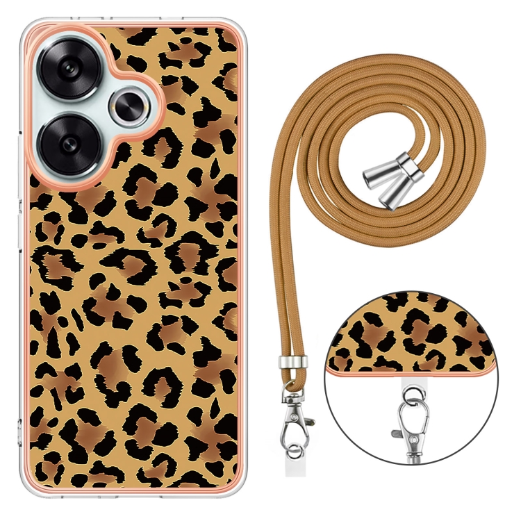 Funda para Teléfono con Imd de Doble Cara Galvanizada con Cordón para Xiaomi Poco F6 5G (Estampado de Leopardo)