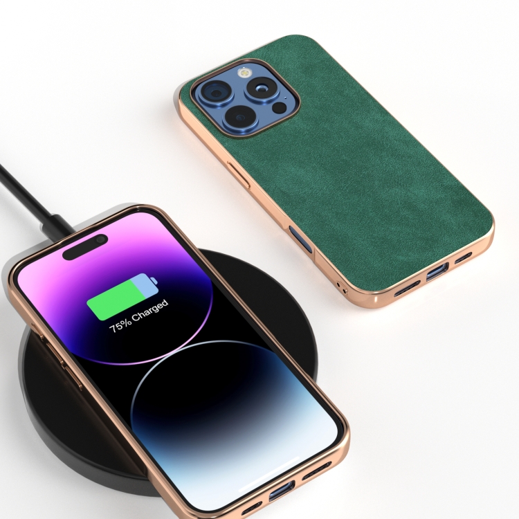 Funda para Teléfono iPhone 16 Pro Marco Galvanizado Cuero Sintético Cobertura Total (Verde)