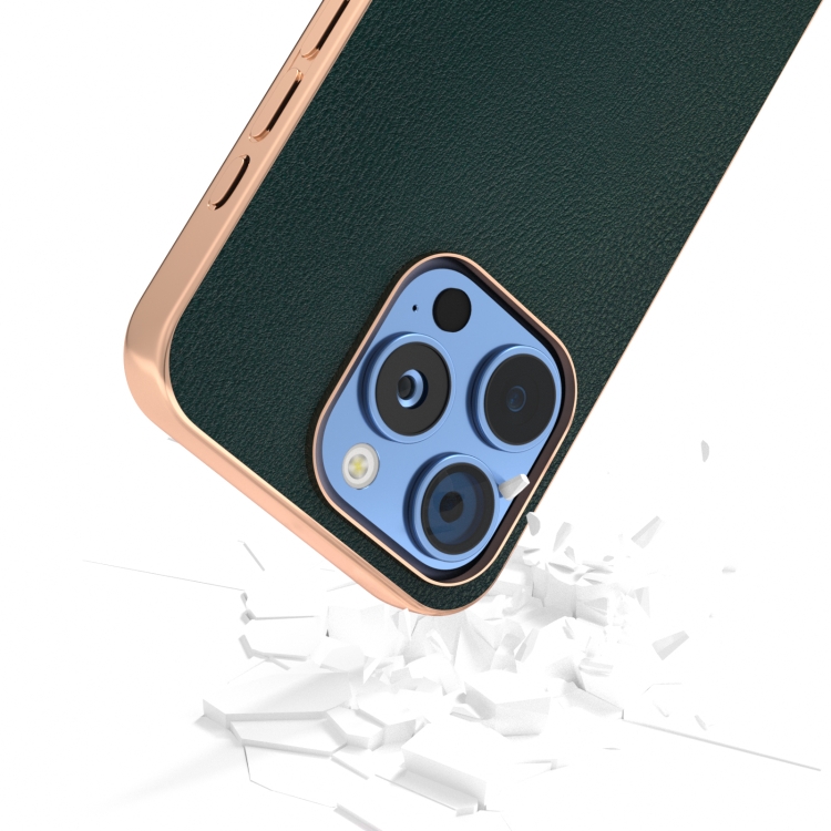 Funda para Teléfono iPhone 16 Pro Marco Galvanizado Cuero Sintético Cobertura Total (Verde)